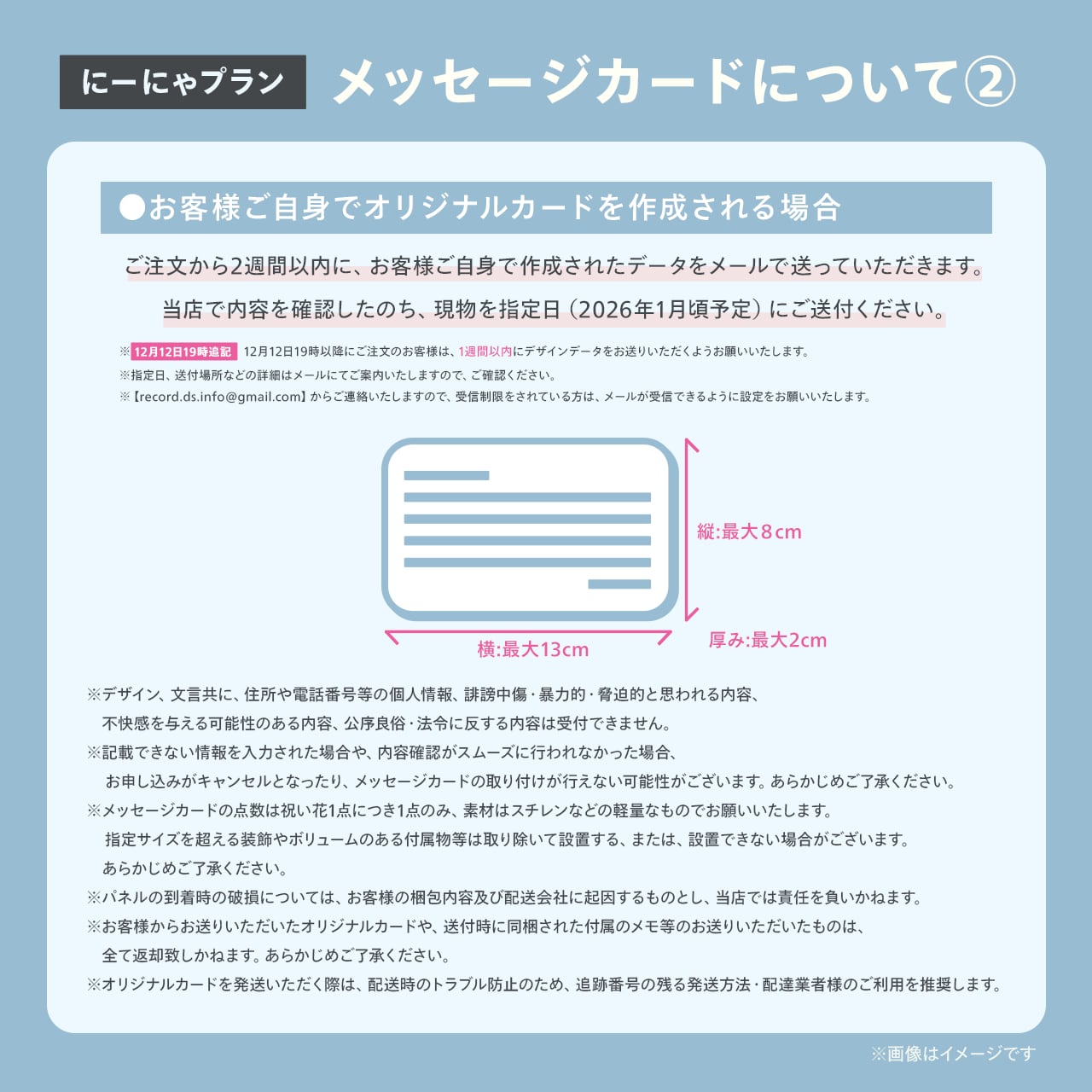 ・詳細は、画像「メッセージカードについて②」をご参照ください。